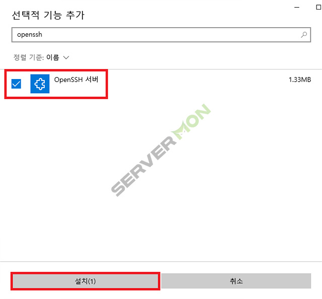 3) 검색창에 OpenSSH 를 검색하고 선택하고 설치를 눌러 설치를 진행 합니다.