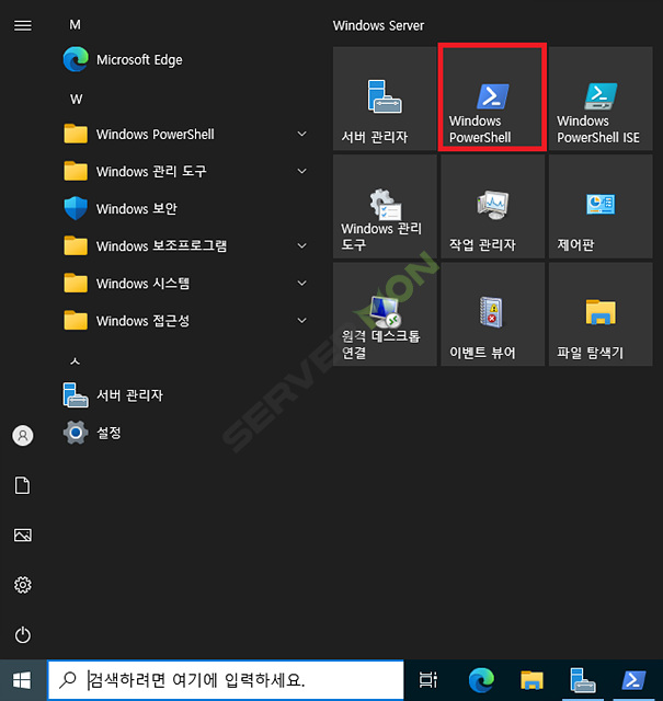 시작버튼을 누른 후 Windows PowerShell 을 실행 합니다.