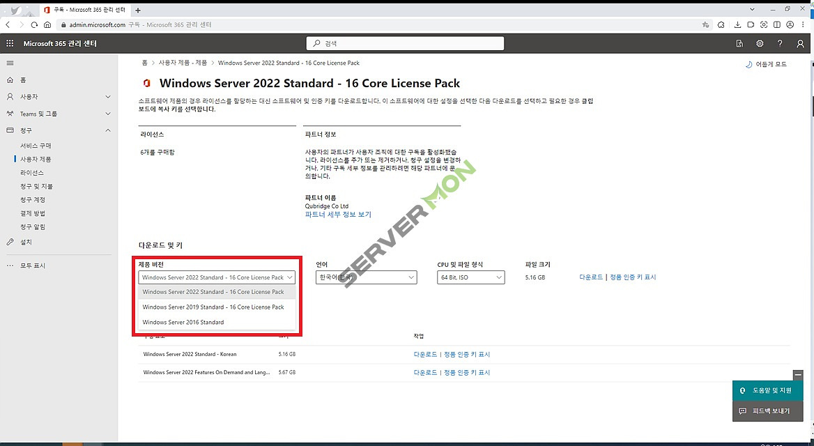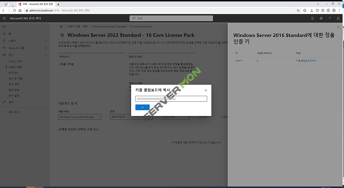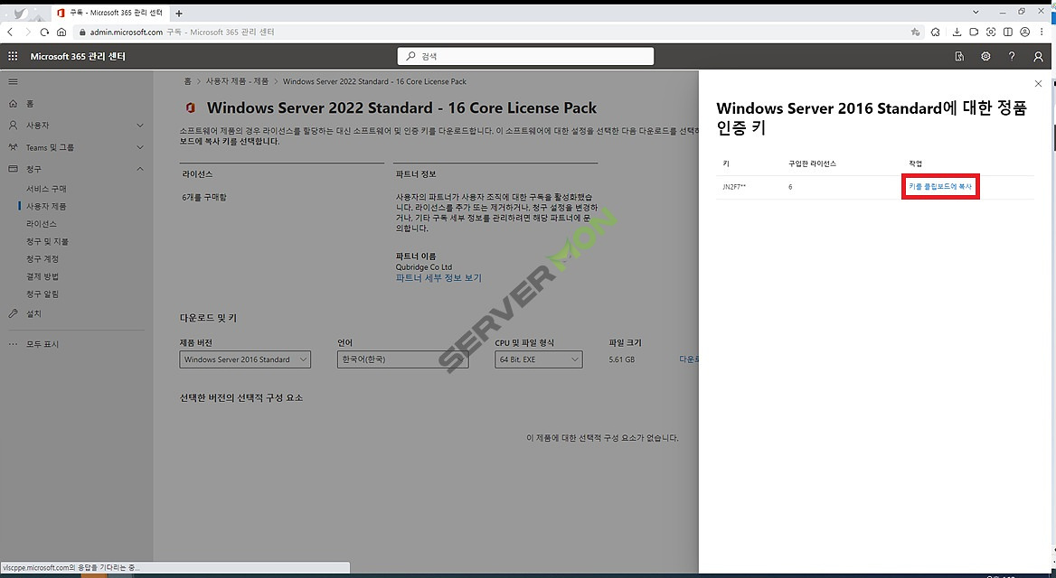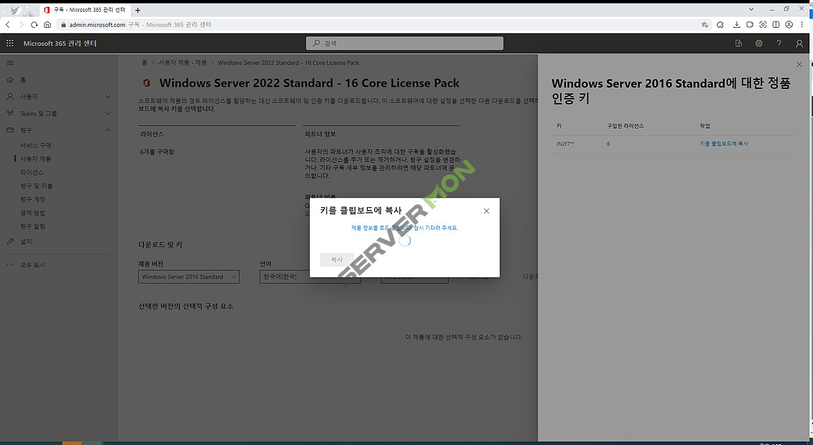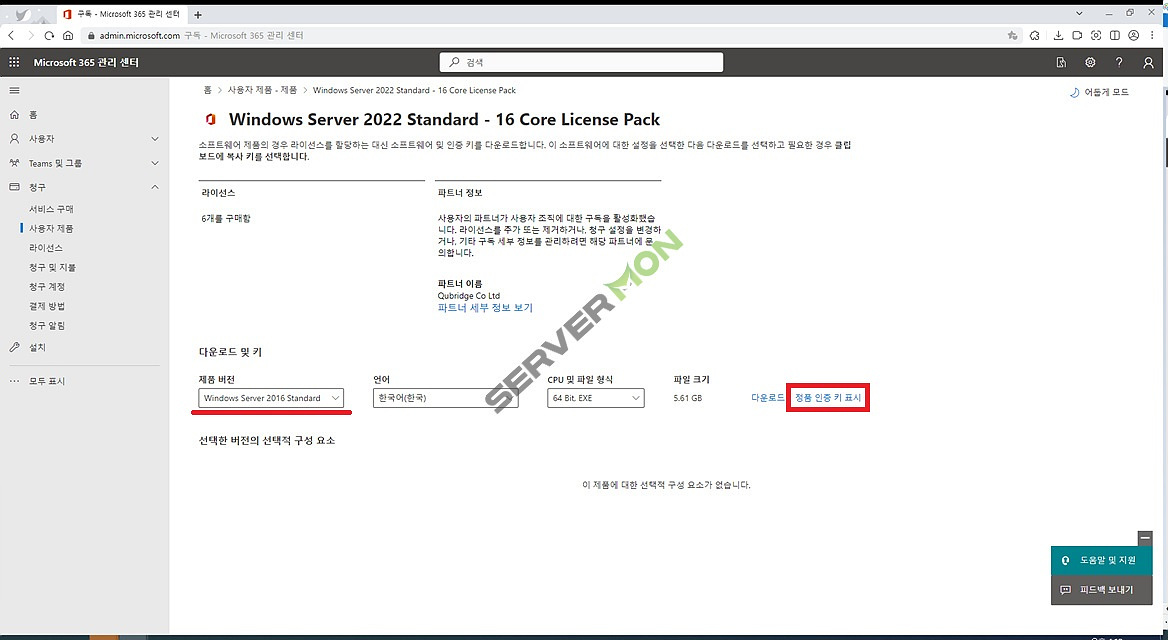 * 본 포스팅에서는 Windows Server 2022의 CSP Lic 구매 후 Windows Server 2016의 정품인증하는 경우를 예시로 설명하고 있습니다. 상황에 따라 상이할 수 있습니다.