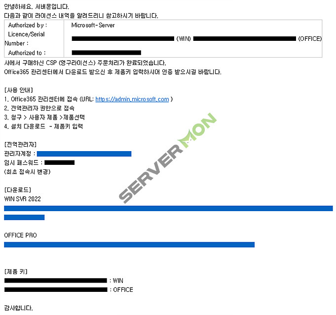 저희 서버몬에서 CSP Lic를 구매하실경우 위 사진과 유사하게 메일을 받게 되십니다.