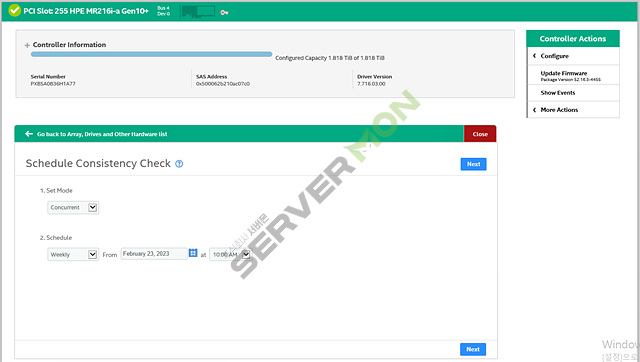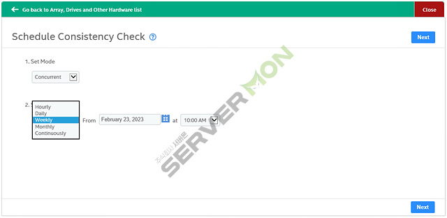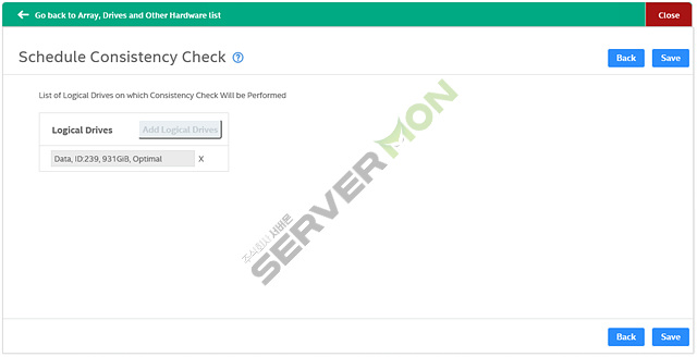 - Schedule Consistency Check : 해당 기능은 설정한 주기에 따라 드라이브의 데이터 일관성을 검사할 수 있음