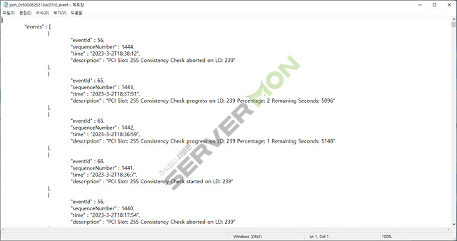 장치에 문제가 발생하거나, RAID 배열이 실패하는 등의 이벤트가 기록되어 내용 확인 가능.