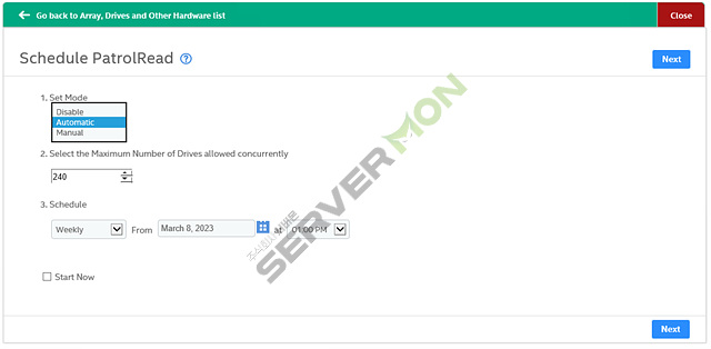 - Schedule Patrol Read : 해당 기능은 설정한 주기에 따라 선택한 드라이브의 데이터 무결성을 검사할 수 있음