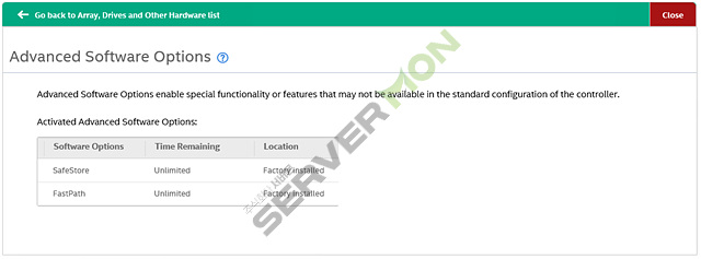 Location은 RAID 컨트롤러에서 지원하는 영역을 의미하며, Factory Installed로 표시된 경우 해당 옵션이 컨트롤러 제조시에 설치되어 있는 상태)