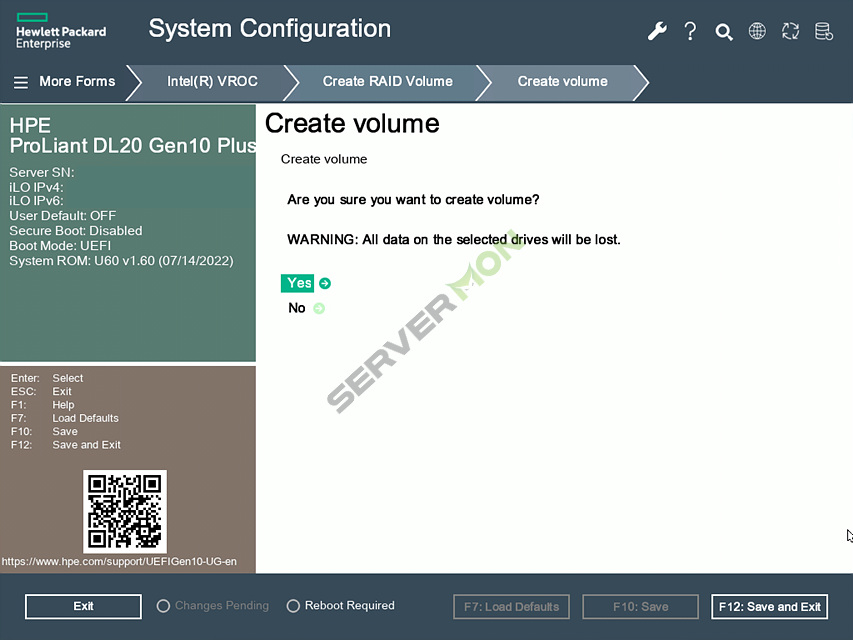 'Yes'를 클릭하여 RAID 구성을 완료합니다.