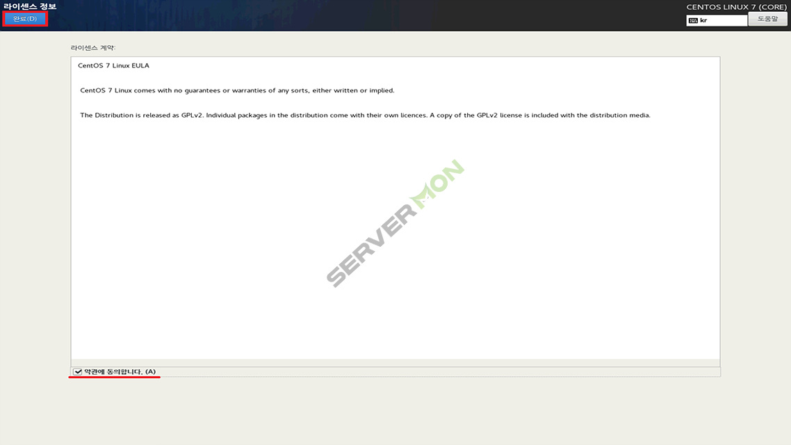 좌측 하단의 '약관에 동의합니다. (A)'를 클릭합니다.