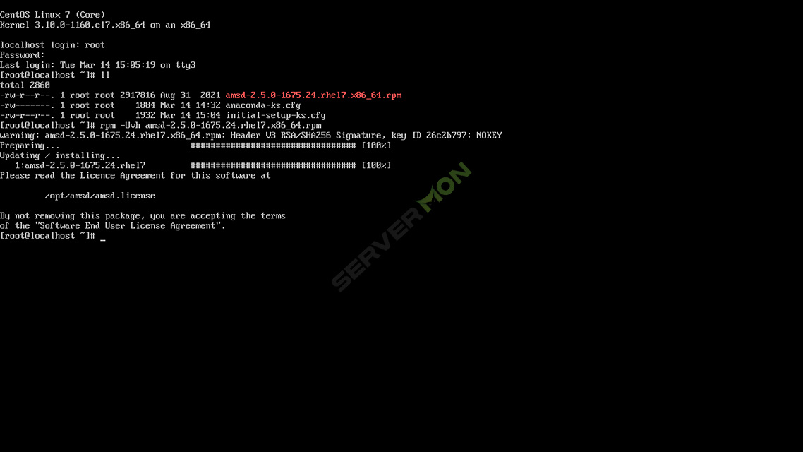 이를 방지하기위해 amsd의 rpm파일을 다운로드 받아 사진과같이 설치합니다.