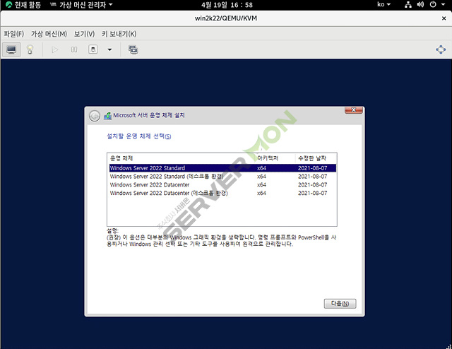 오늘은 Rockylinux8.x 에서 Virtual Machine manager 설치 후 그 위에 Windows Server 2022설치를 해보겠습니다.