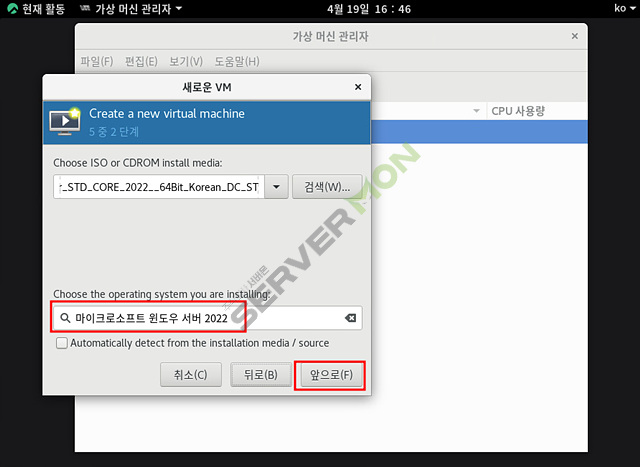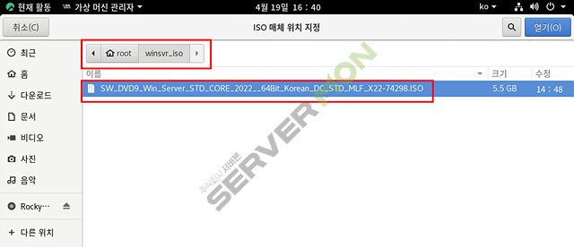 # 검색을 통해 미리 올려놓은 ISO 파일을 선택 합니다.