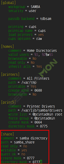 4. samba conf 설정