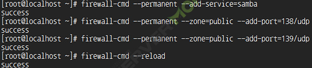 samba 서비스는 네트워크 프로토콜 프로그램을 사용하기 때문에 전용 포트가 열려있어야 합니다.