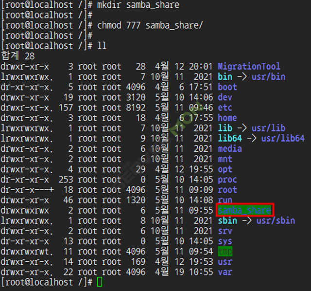공유할 디렉토리 생성 과 권한부여를 해보겠습니다.