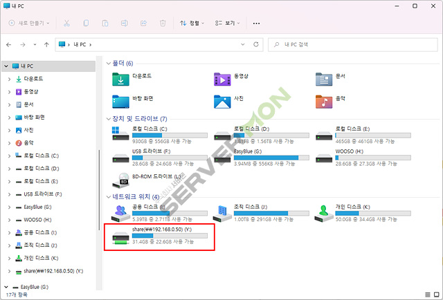 7. windows 네트워크 드라이브 연결