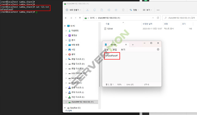 윈도우 에서 구성 후 리눅스에서 드라이브 연결도 가능하며 반대로도 구현이 가능 합니다.