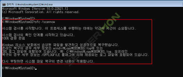 시스템 파일 검사기(SFC)를사용한 복구시도