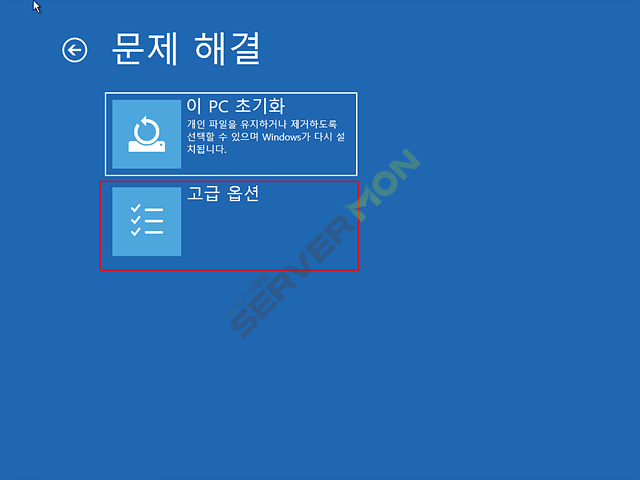PC의 전원을 종료후 3~4번 가량 부팅중 재부팅하면 아래 사진과 같이 고급 부팅모드로 진입이 가능합니다.
