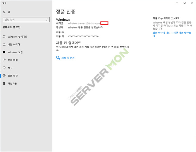 여기까지 확인되었다면 정상적으로 Windows Server 에디션 변경이 되었고 구매하신 라이선스로 인증이 되었거나 또는 인증이 가능한 상태가 된 것입니다.