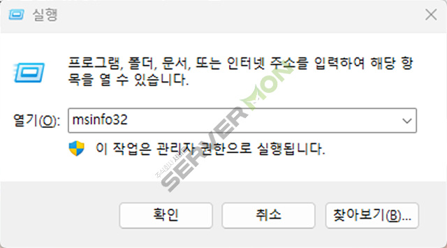 Msinfo32 를 입력후 확인 합니다. 시스템 정보창을 확인합니다.