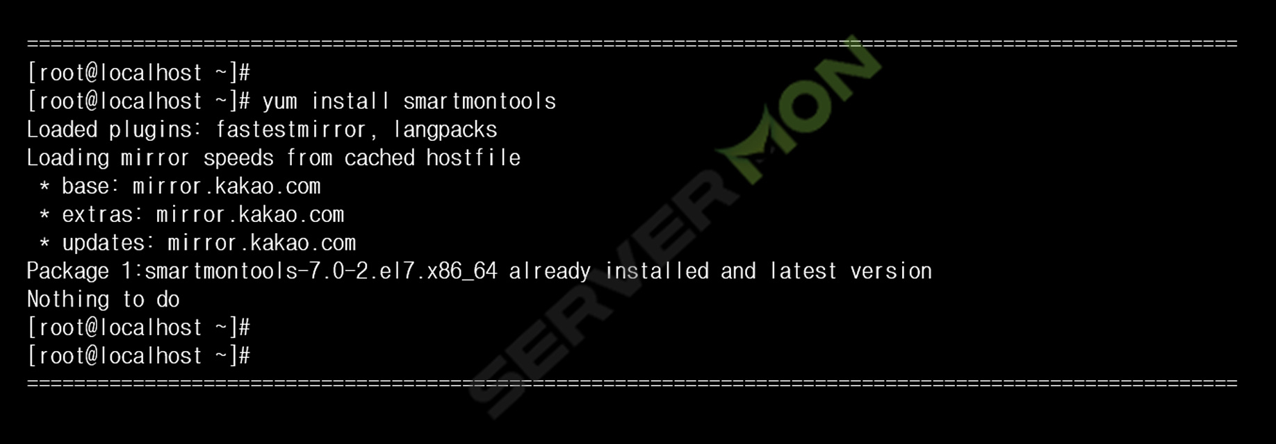 디스크 상세확인을 위해 yum을 통해 smartmontools를 설치합니다.