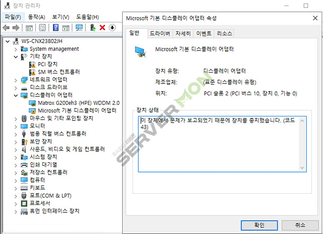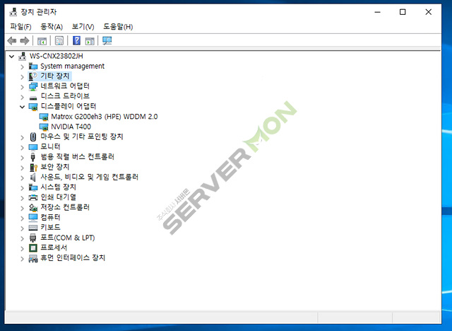 장치 관리자에서 해당 GPU가 인식되지 않은 모습을 볼 수 있습니다.