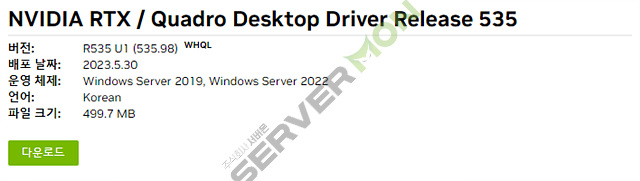 NVIDIA 드라이버 홈페이지에서 해당 GPU의 드라이버를 설치 하도록 합니다.