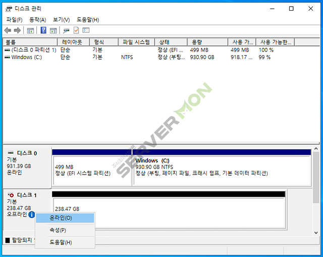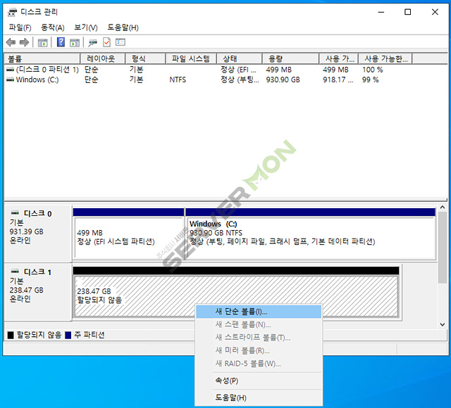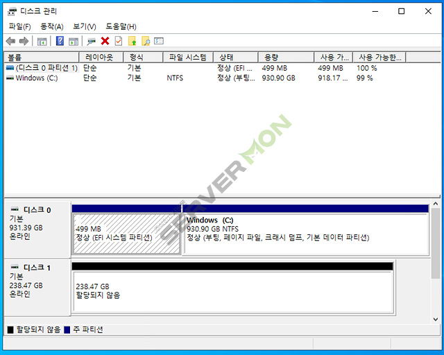 추가한 M.2 NVMe가 아직은 할당되지 않은 모습을 볼 수 있습니다.