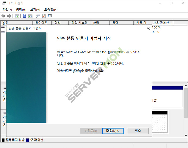 제어판 > 시스템 및 보안 > 하드 디스크 파티션 만들기 및 포맷 항목