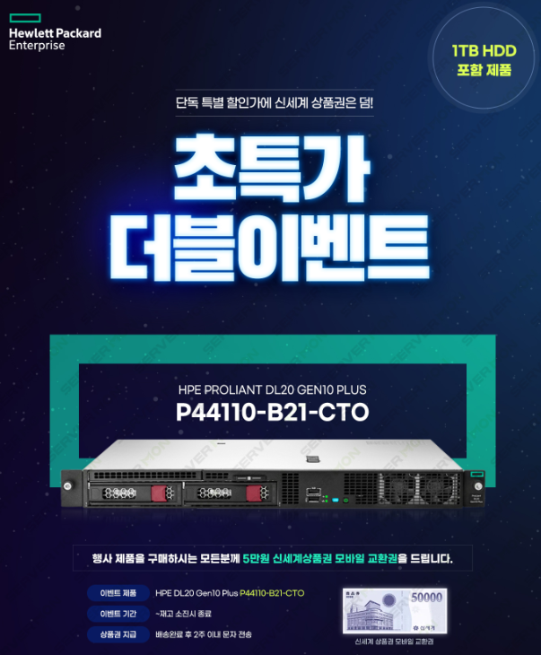금일은 서버몬에서 초특가 더블이벤트로 진행되는 DL20 GEN10 PLUS (P44110-B21-CTO) 장비에