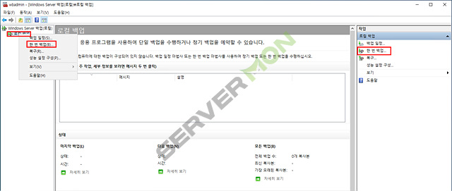 로컬 백업 에서 마우스 우클릭 한번백업 클릭 또는 우측 상단에 한번 백업을 클릭해 주세요.