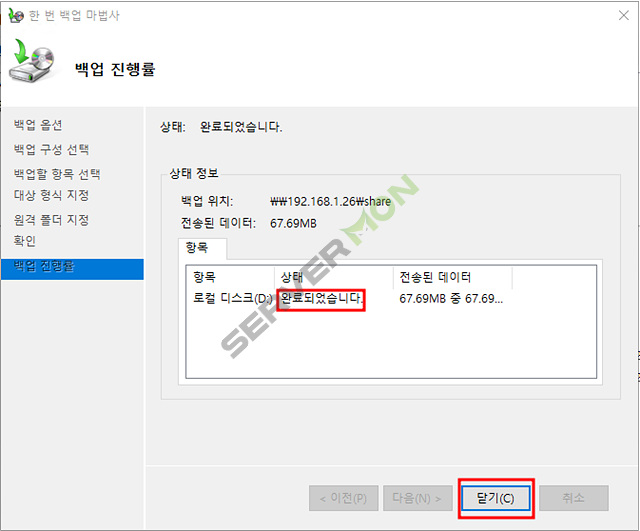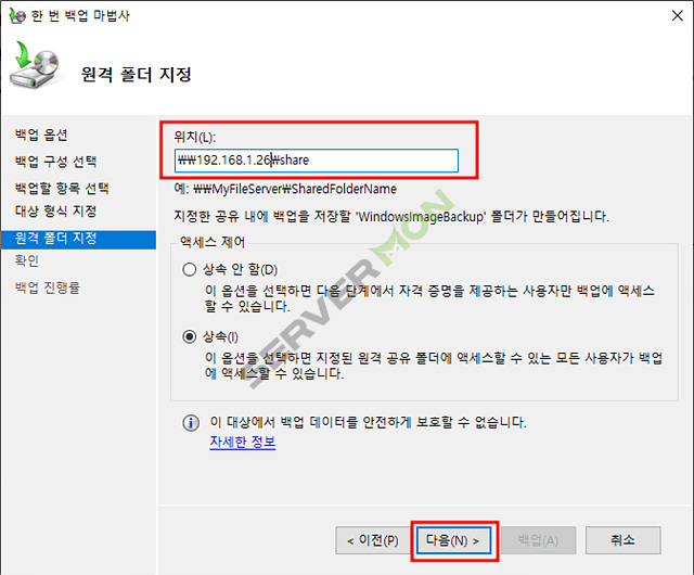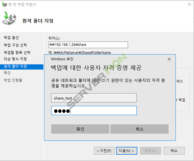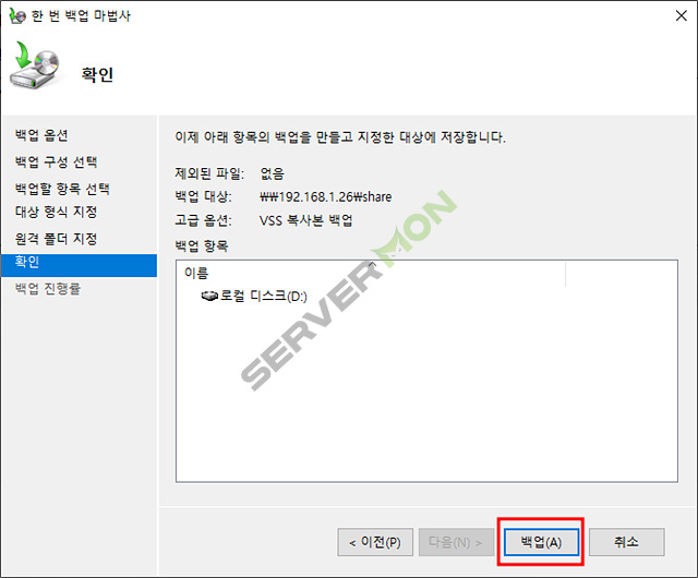 해당 삼바 서버로 백업을 진행 해보겠습니다.