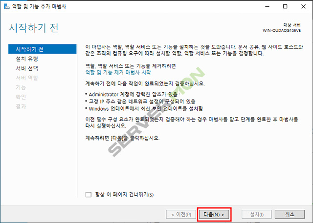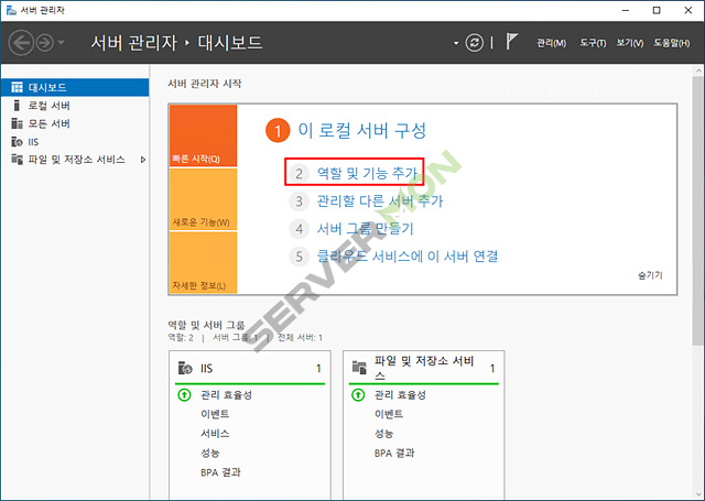 서버 관리자를 통해 역할 및 기능 추가로 들어가주세요.