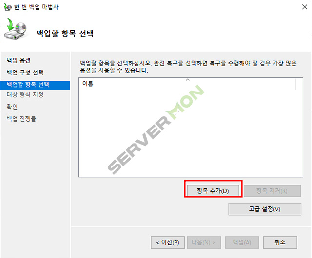 전체 서버를 백업할 수 있고 파일 또는 사용자 지정 볼륨을 백업할 수 있습니다.