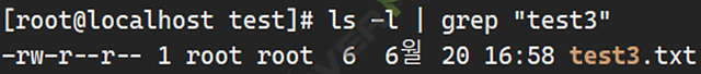 이 예시에서는 ls -l 명령어로 현재 디렉토리의 파일 목록을 보여주고, 파이프(|)를 통해 grep 명령어로 "test3"라는