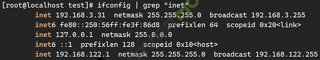 - ifconfig와 grep을 함께 사용하여 네트워크 인터페이스 정보 검색