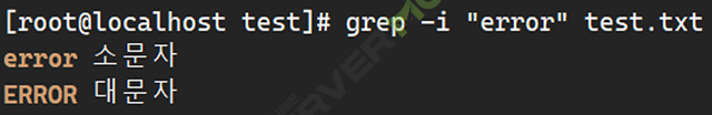 -i: 대소문자를 구분하지 않고 검색합니다.