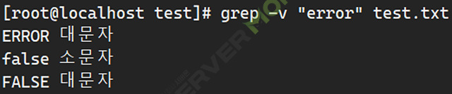 -v: 패턴과 일치하지 않는 행을 출력합니다.
