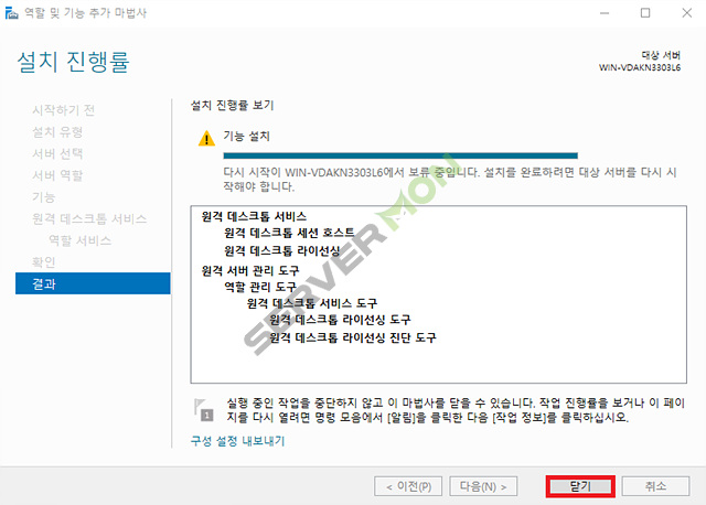 설치가 완료된 후에는 반드시 서버를 재 부팅 해야 합니다.