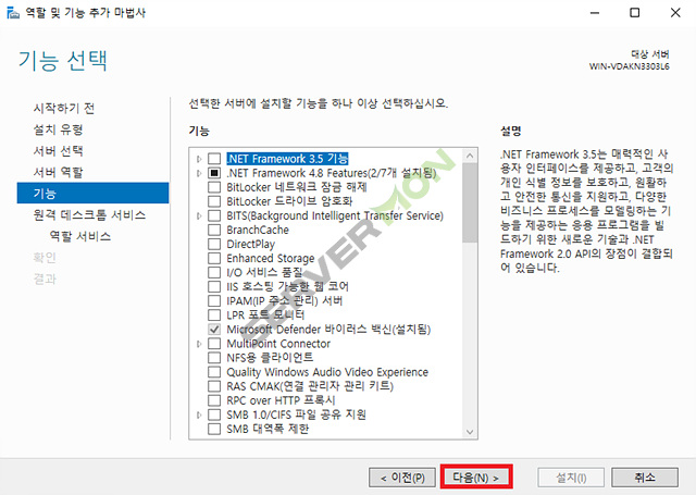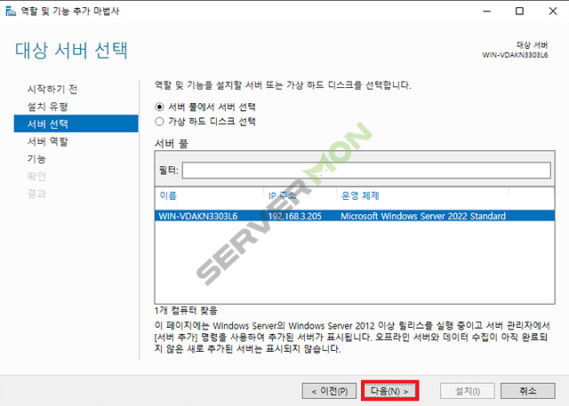 2) 서버 역할 선택 항목이 나올때까지 '다음' 버튼을 눌러 진행 합니다.