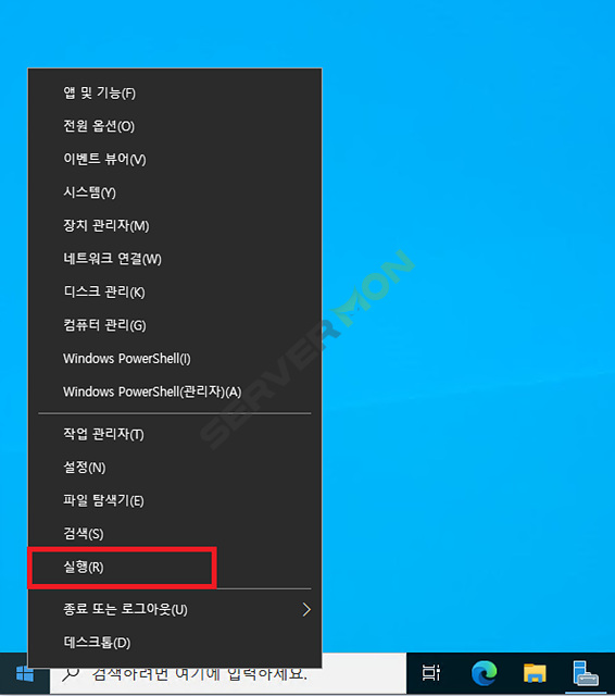 1) Windows 시작 버튼에서 실행을 선택하여 실행 창을 활성화 시킵니다.