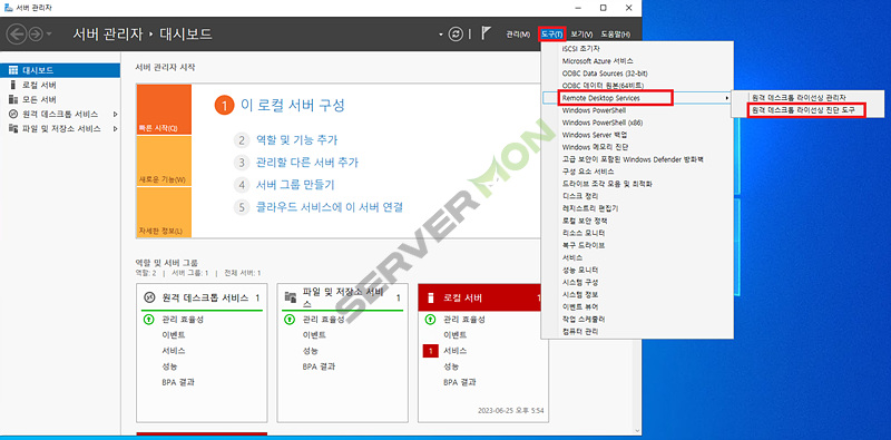 6) 서버 관리자 > 도구 > Remote Desktop Services > 원격 데스크톱 라이선싱 진단 도구 를 선택 합니다.
