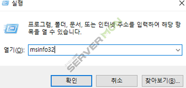 "msinfo32"를 입력하고 엔터를 눌러 시스템 정보를 엽니다.