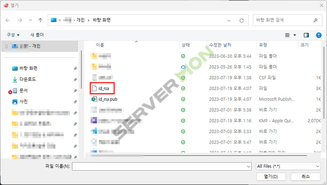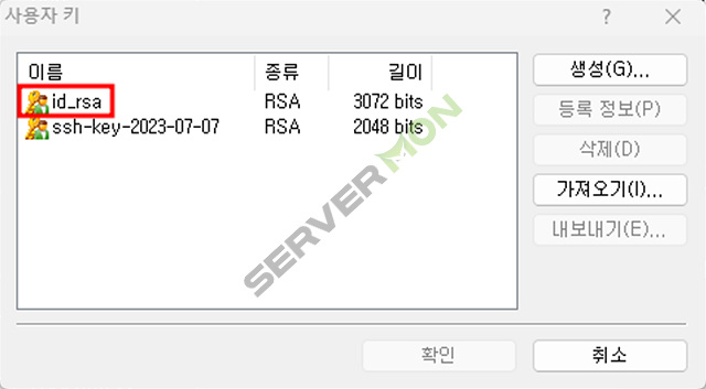 추가된 id_rsa 파일을 선택 후 확인을 눌러주세요.