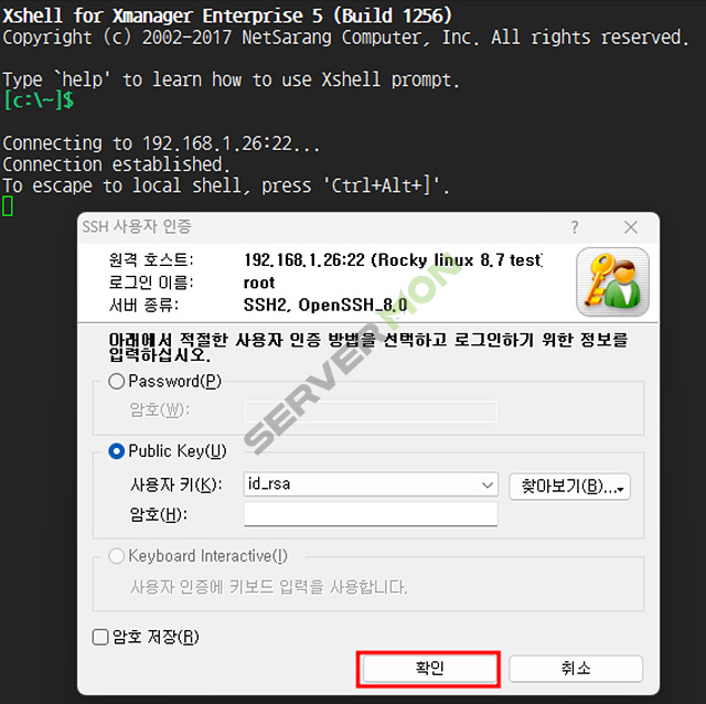 5. Xshell 을 이용해 개인키로 서버접속