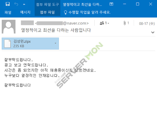 - 이메일 : 이메일로 랜섬웨어가 유포되는 경우가 많다는 건 이미 널리 알려진 상황입니다. 초기에는 악성코드 파일을