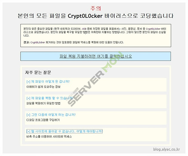 지시에 따라 비용을 보내면 해제 코드를 보내주겠다" 와 같은 내용이 주 내용이며 한글로 쓰여진