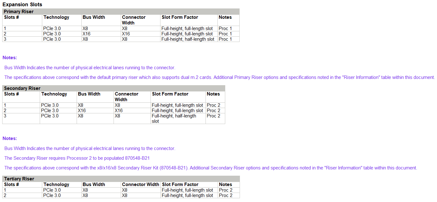 HPE DL380의 PCI-e 확장은 다음과 같습니다.