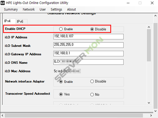 dhcp enable 를 선택해여 자동으로 선택해도 되고 disable 선택 후 원하는 IP 설정 후 apply 로 마무리 해주세요.