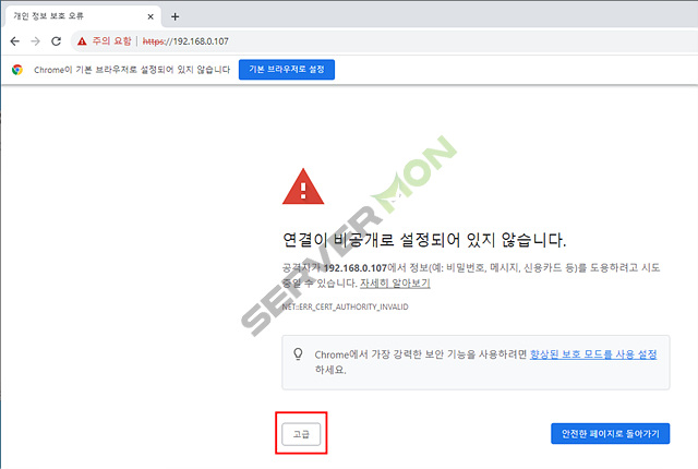고급 선택 후 안전하지않음 으로 이동 선택해 주세요.
