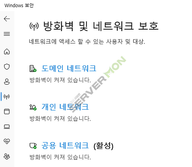 컴퓨터를 외부 공격으로부터 보호합니다. 방화벽은 허용된 트래픽만 통과시키고, 허용되지 않은 트래픽은 차단합니다.