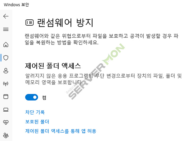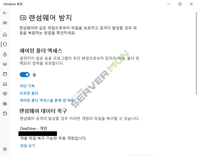 - 보호되는 폴더 : 문서, 사진, 다운로드, 비디오, 음악, OneDrive, 로컬 계정 프로필 폴더 등 중요 데이터가